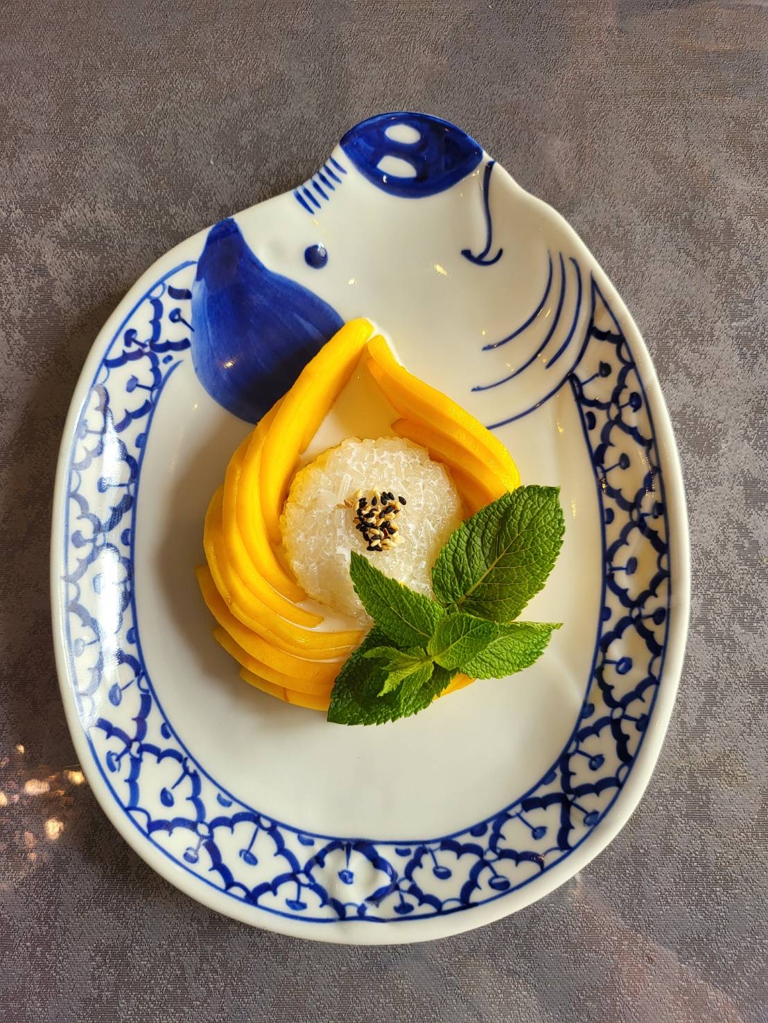 ENTRÉE AU CHOIX : Salade Chapkam. Lap au boeuf (piquante niveau 2, ). Tom Kha Kay (Soupe de poulet acidulée au lait de coco). PLAT AU CHOIX : Tchutchi Kung (piquante niveau 1). Hormok Pla (piquante niveau 1). Pad Prig Thaï On. ACCOMPAGNEMENT AU CHOIX : Nouilles aux légumes Chopsuey Riz gluant. Riz à la chair e crabe. DESSERT AU CHOIX : Crêpe Thepnakhorn. Khanom Morkaeng. Ananas ou mangue fraîche. Café ou thé |